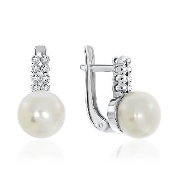 Серьги для женщин из серебра 925 пробы с жемчугами,фианитами из коллекции Афродита артикул 2340050805л от компании KRASNOE