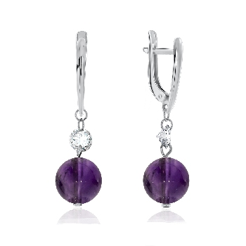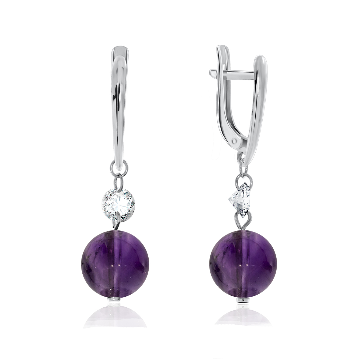 Серьги для женщин из серебра 925 пробы с фианитами,аметистами из коллекции Невесомость артикул 2340060625 от компании KRASNOE