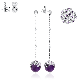Пусеты для женщин из серебра 925 пробы с аметистами,ситаллами,,фианитами из коллекции Icecream артикул 2340060855л от компании KRASNOE