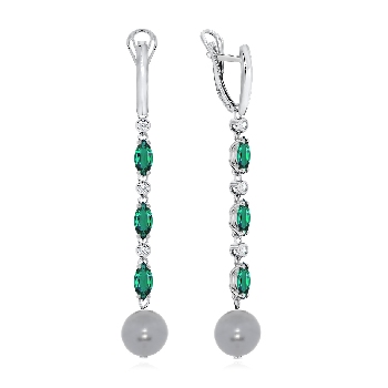 Серьги для женщин из серебра 925 пробы с жемчугами,фианитами,,ситаллами из коллекции Shine артикул 2340241204-2-21 от компании KRASNOE