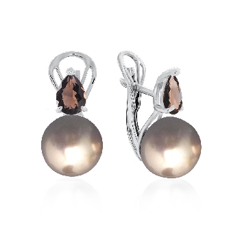 Серьги для женщин из серебра 925 пробы с жемчугом,фианитами из коллекции Дуэт артикул 2340241396-43 от компании KRASNOE