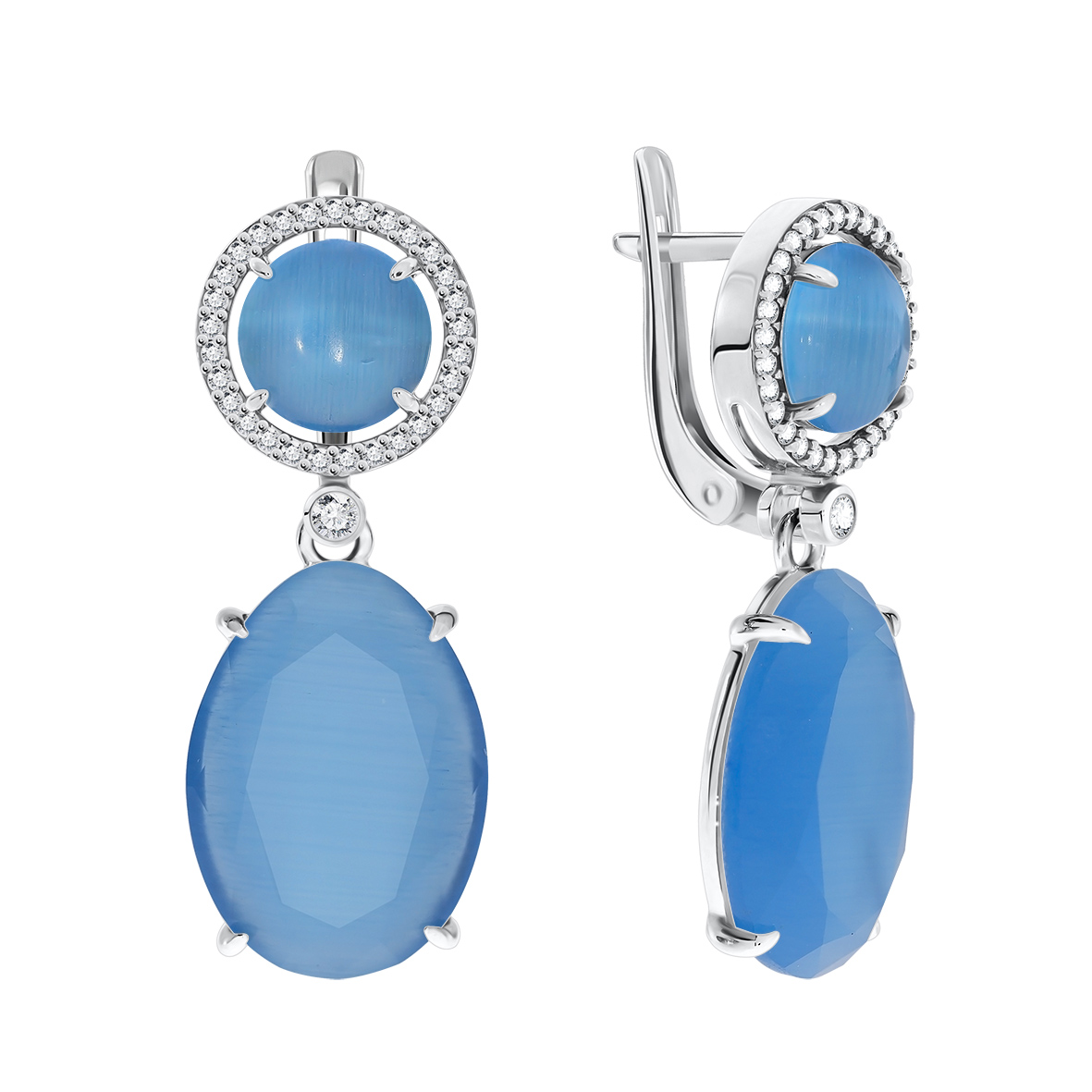 Серьги для женщин из серебра 925 пробы с кошачий глазами,фианитами из коллекции Уральские самоцветы артикул 2340260508л-70 от компании KRASNOE
