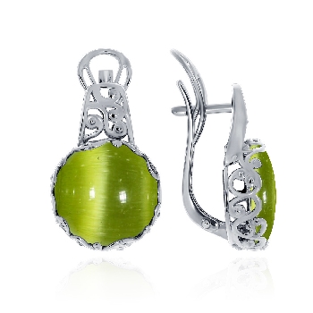 Серьги для женщин из серебра 925 пробы с кошачий глазами из коллекции Уральские самоцветы артикул 2340260934-57 от компании KRASNOE