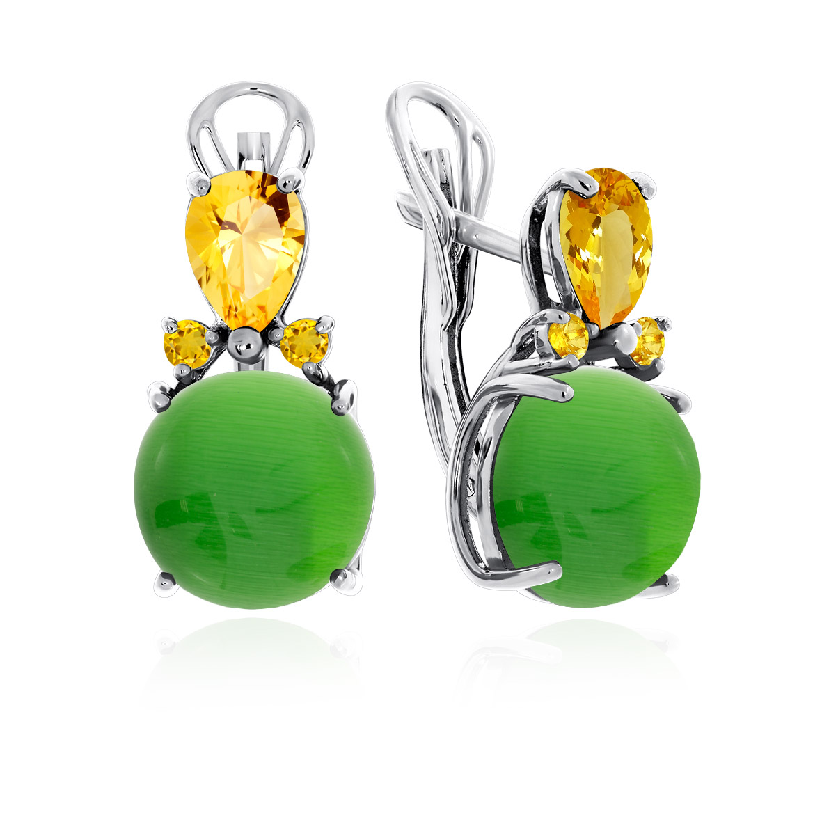 Серьги для женщин из серебра 925 пробы с кошачий глазами,цитринами из коллекции Уральские самоцветы артикул 2340260935-62 от компании KRASNOE