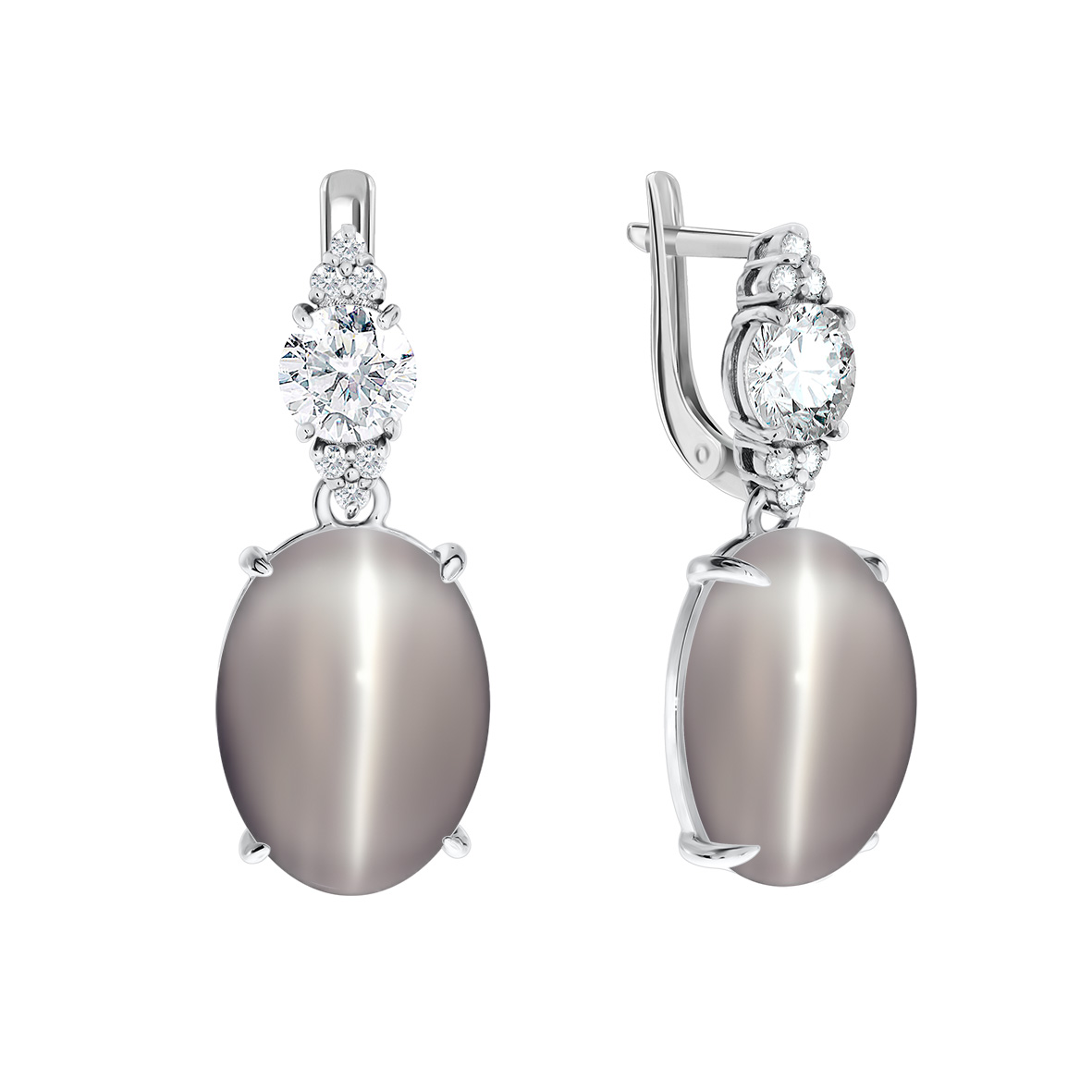 Серьги для женщин из серебра 925 пробы с фианитами,кошачий глазами из коллекции Уральские самоцветы артикул 2340260936-21 от компании KRASNOE