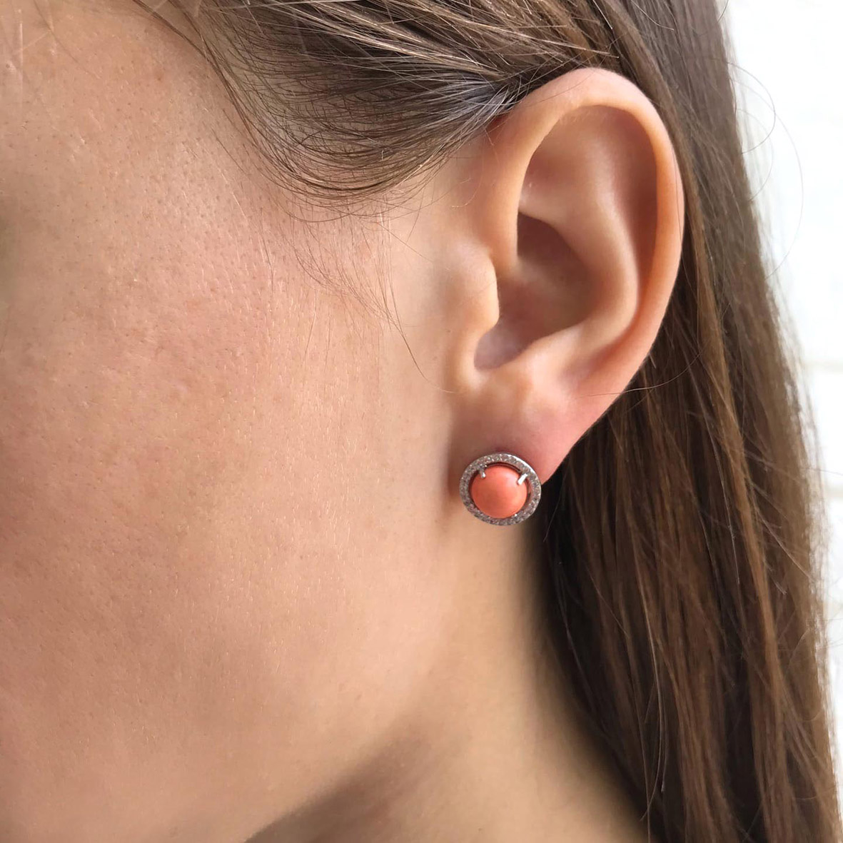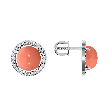 Пусеты для женщин из серебра 925 пробы с кораллами,фианитами из коллекции Уральские самоцветы артикул 2340282055 от компании KRASNOE