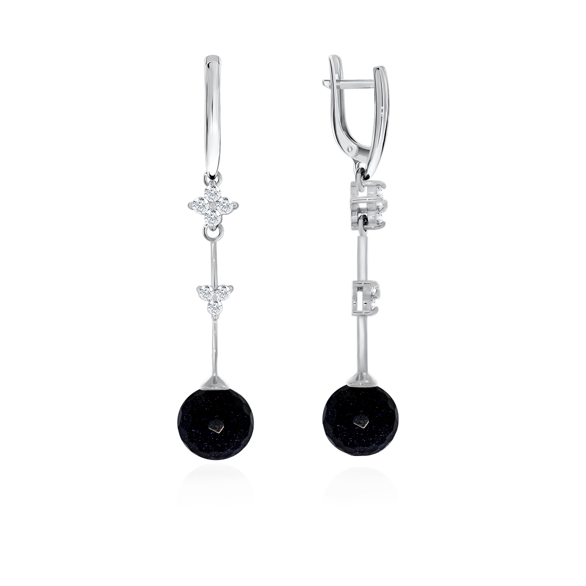 Серьги для женщин из серебра 925 пробы с синтетическими авантюринами,фианитами из коллекции Magic stick артикул 2340360657-80 от компании KRASNOE
