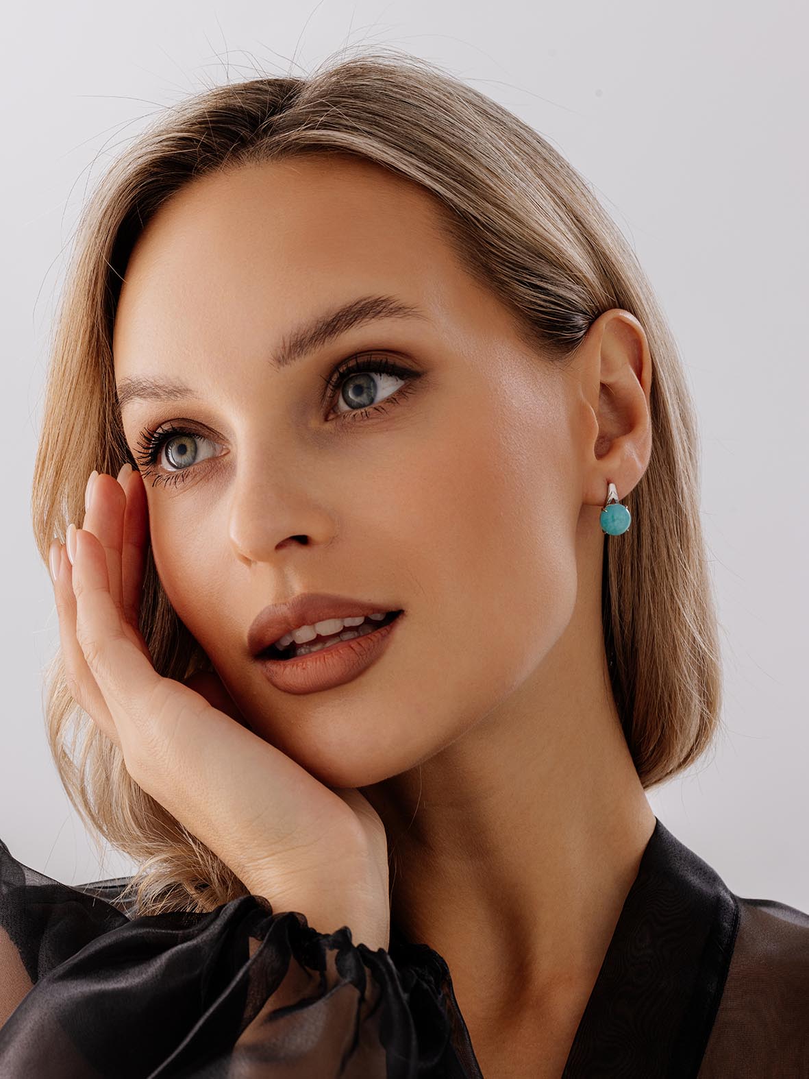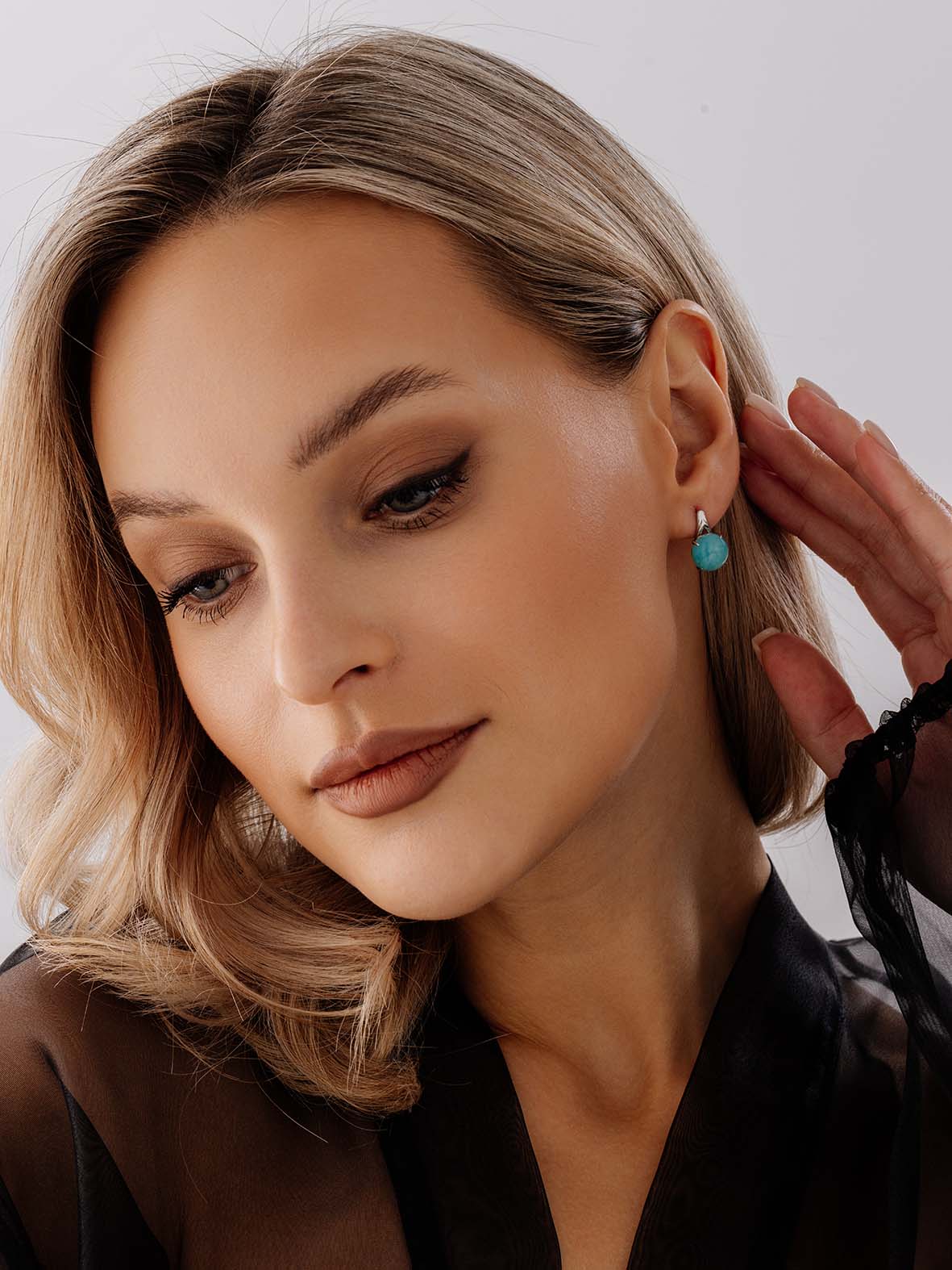 Серьги для женщин из серебра 925 пробы с амазонитами из коллекции Уральские самоцветы артикул 2340370124 от компании KRASNOE