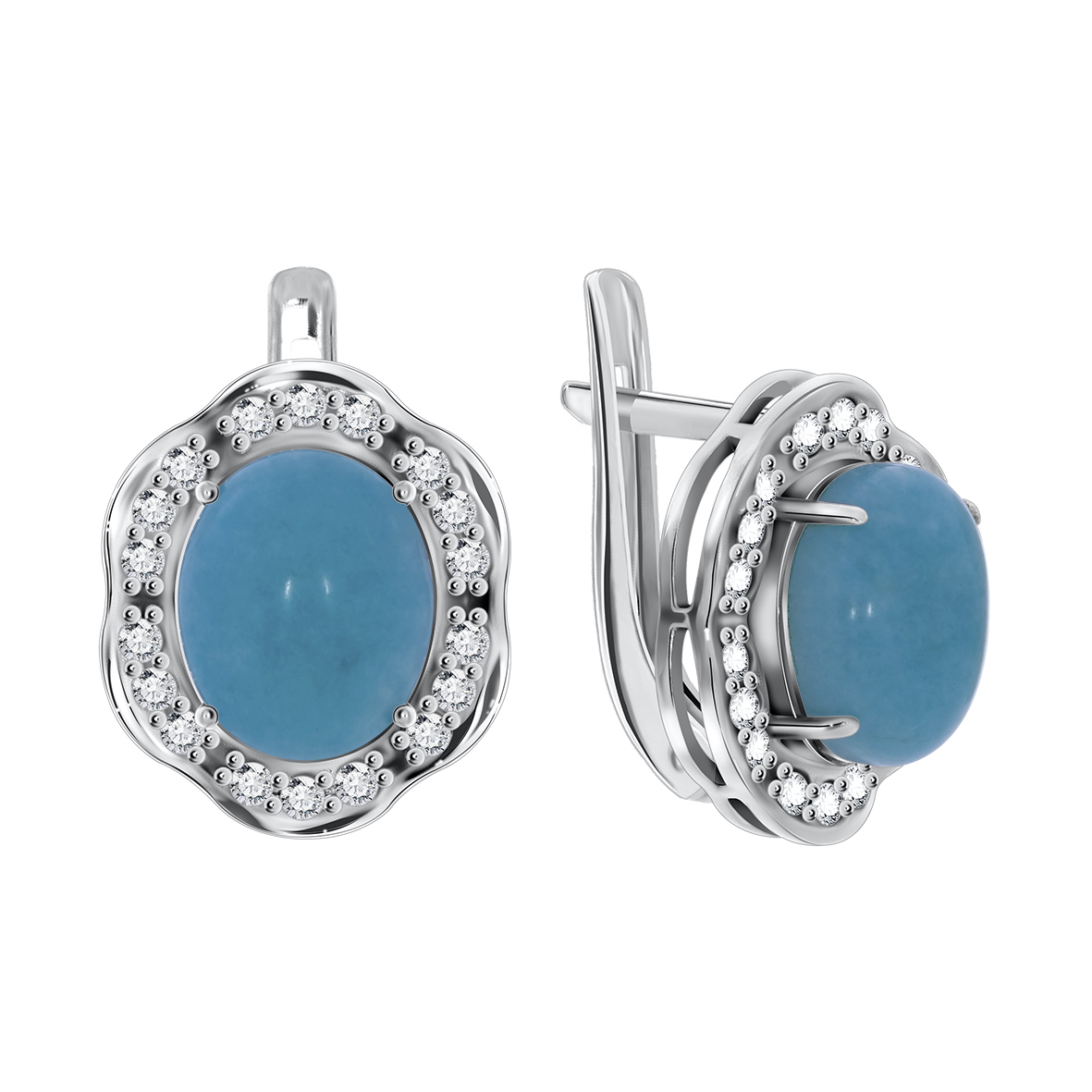 Серьги для женщин из серебра 925 пробы с амазонитами,фианитами из коллекции Ирида артикул 2340370141 от компании KRASNOE