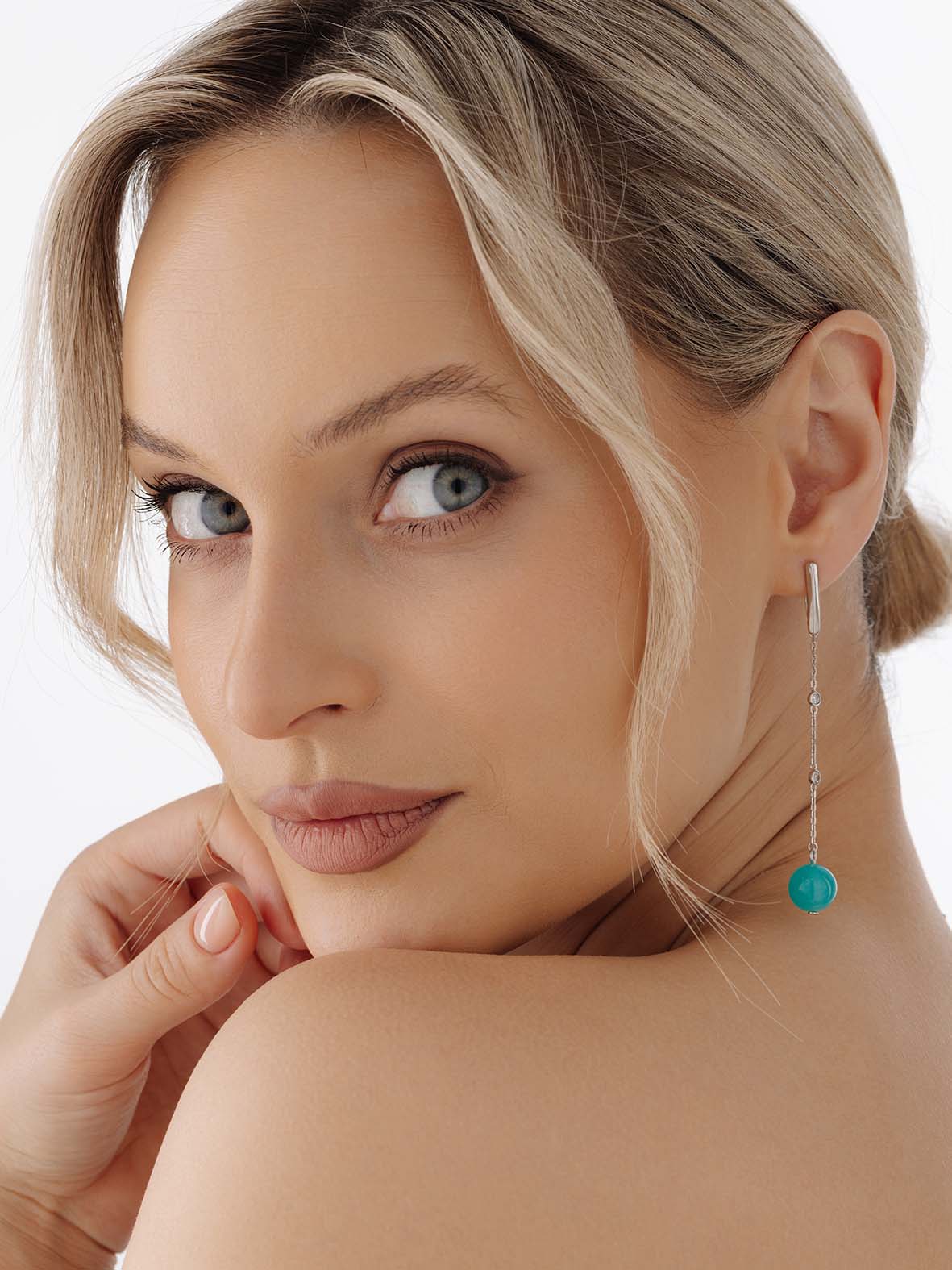 Серьги для женщин из серебра 925 пробы с амазонитами,фианитами из коллекции Icecream артикул 2340370853л от компании KRASNOE