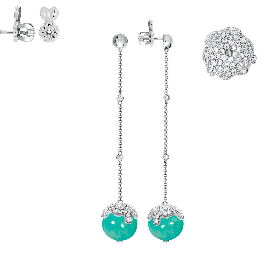Пусеты для женщин из серебра 925 пробы с амазонитами,фианитами из коллекции Icecream артикул 2340370855л от компании KRASNOE