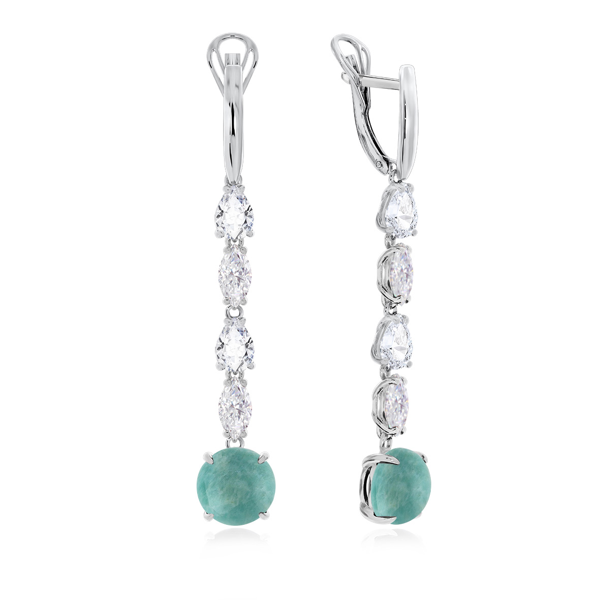 Серьги для женщин из серебра 925 пробы с амазонитами,фианитами из коллекции Shine артикул 2340371205-1 от компании KRASNOE