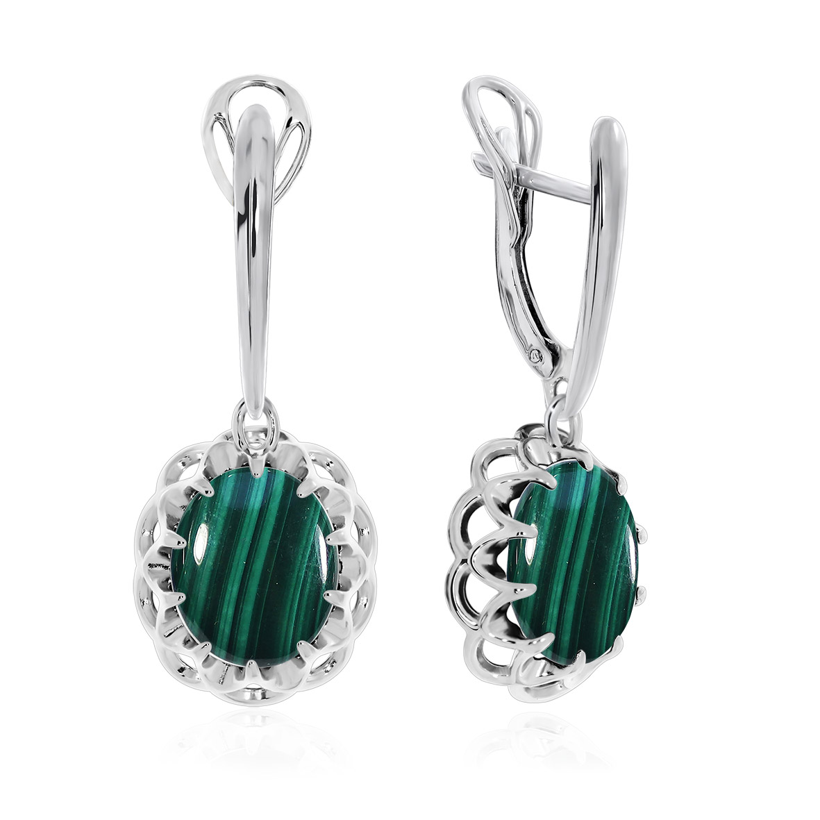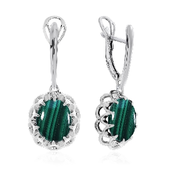 Серьги для женщин из серебра 925 пробы с малахитами из коллекции Уральские самоцветы артикул 2340381541-1 от компании KRASNOE