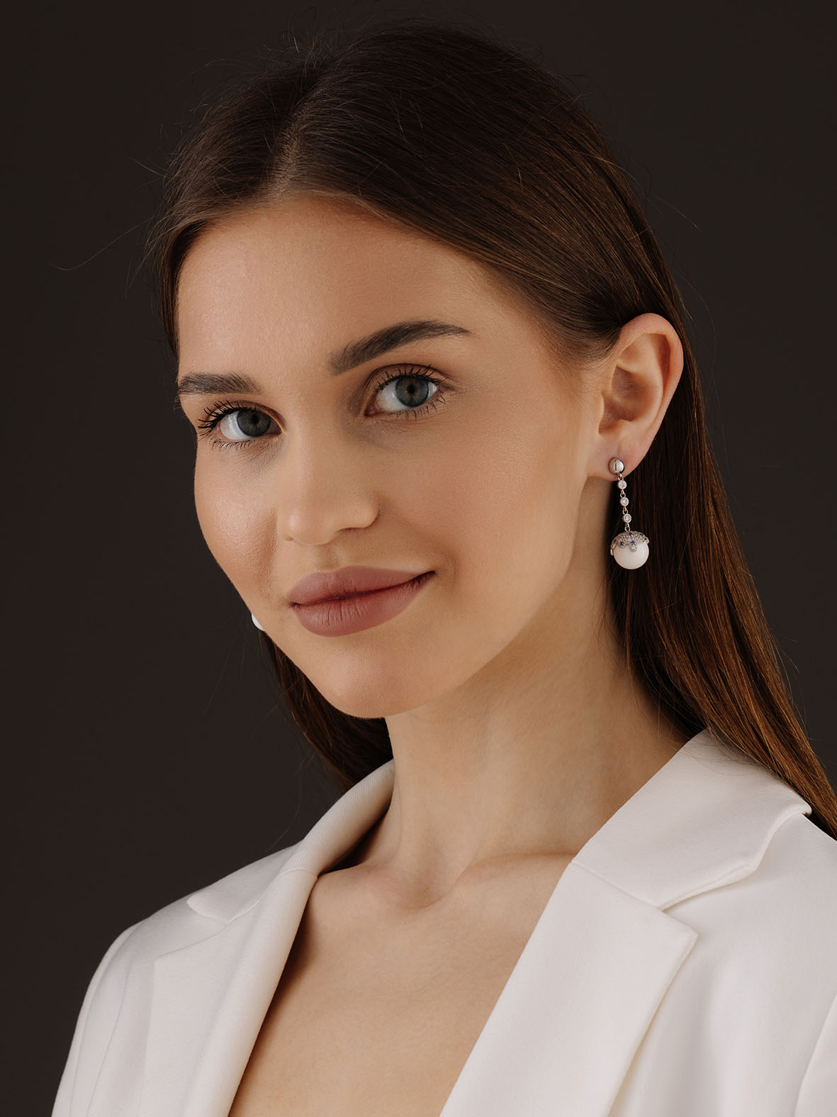 Пусеты для женщин из серебра 925 пробы с агатами,ситаллами,,фианитами из коллекции Icecream артикул 2340390850л-10 от компании KRASNOE