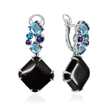 Серьги для женщин из серебра 925 пробы с агатами,ситаллами,,фианитами из коллекции Уральские самоцветы артикул 2340390878-20 от компании KRASNOE