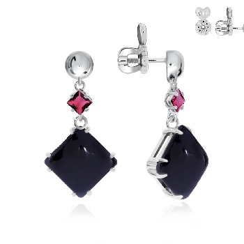 Пусеты для женщин из серебра 925 пробы с агатами,фианитами из коллекции Уральские самоцветы артикул 2340391232-20 от компании KRASNOE