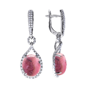 Серьги для женщин из серебра 925 пробы с родонитами,фианитами из коллекции Уральские самоцветы артикул 2340450194 от компании KRASNOE