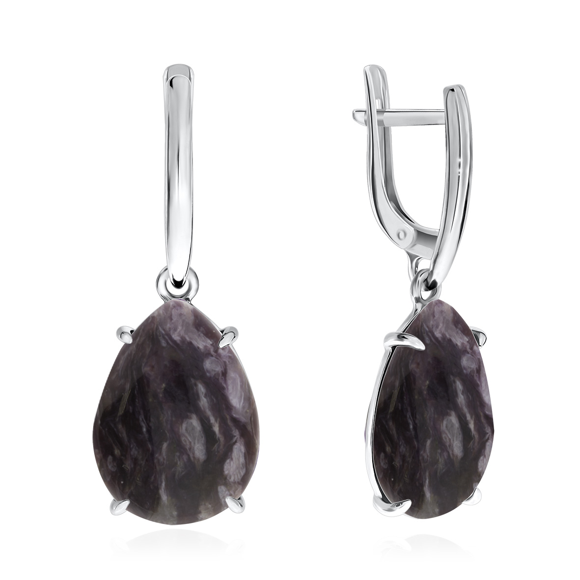 Серьги для женщин из серебра 925 пробы с чароитами из коллекции Уральские самоцветы артикул 2340460500-1 от компании KRASNOE