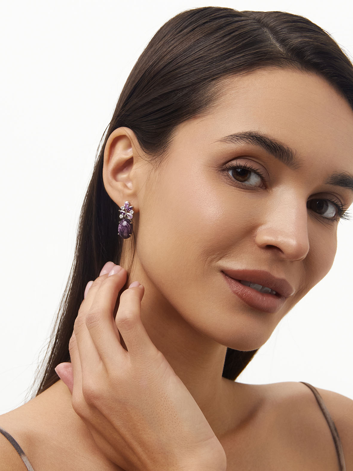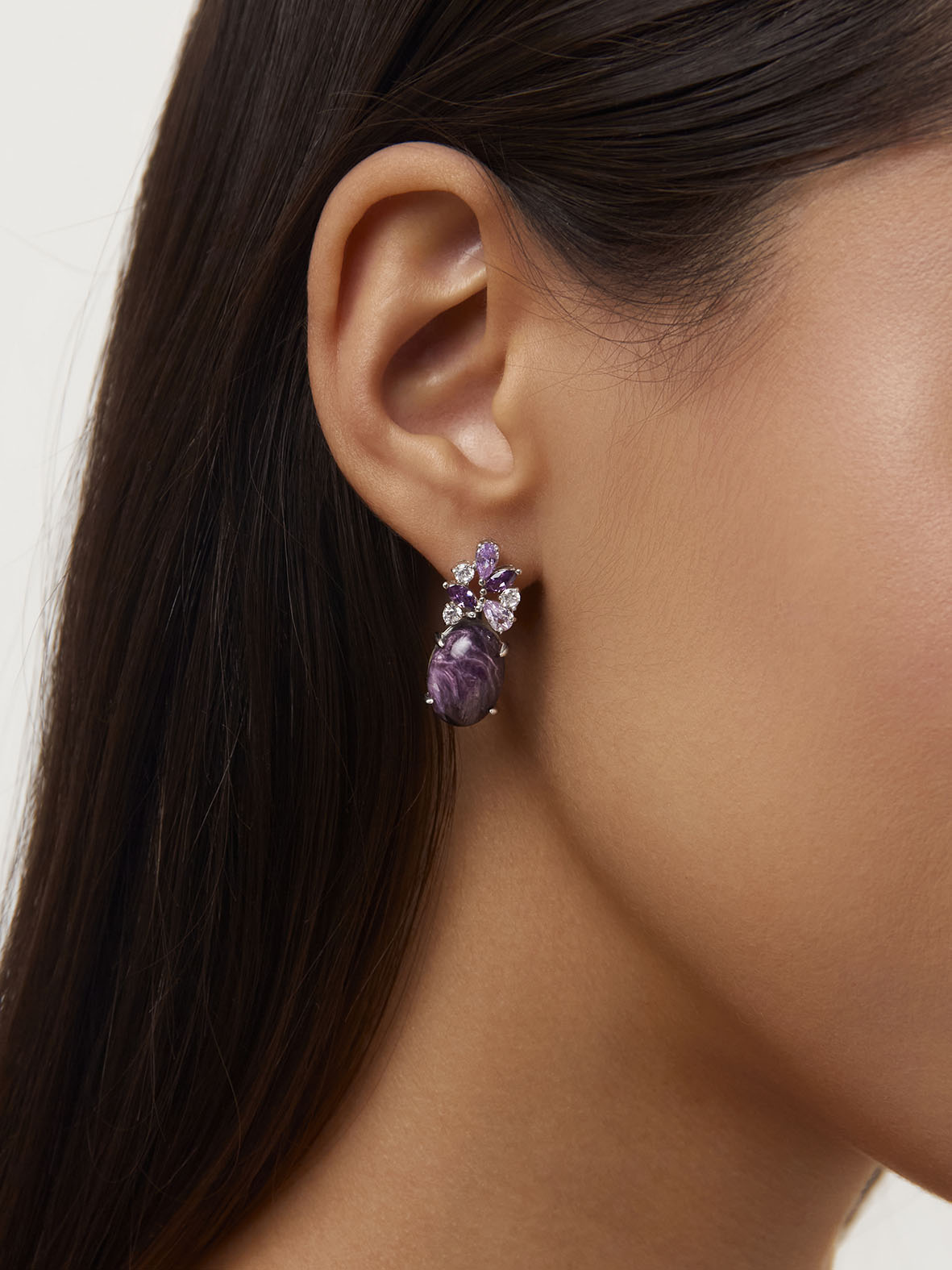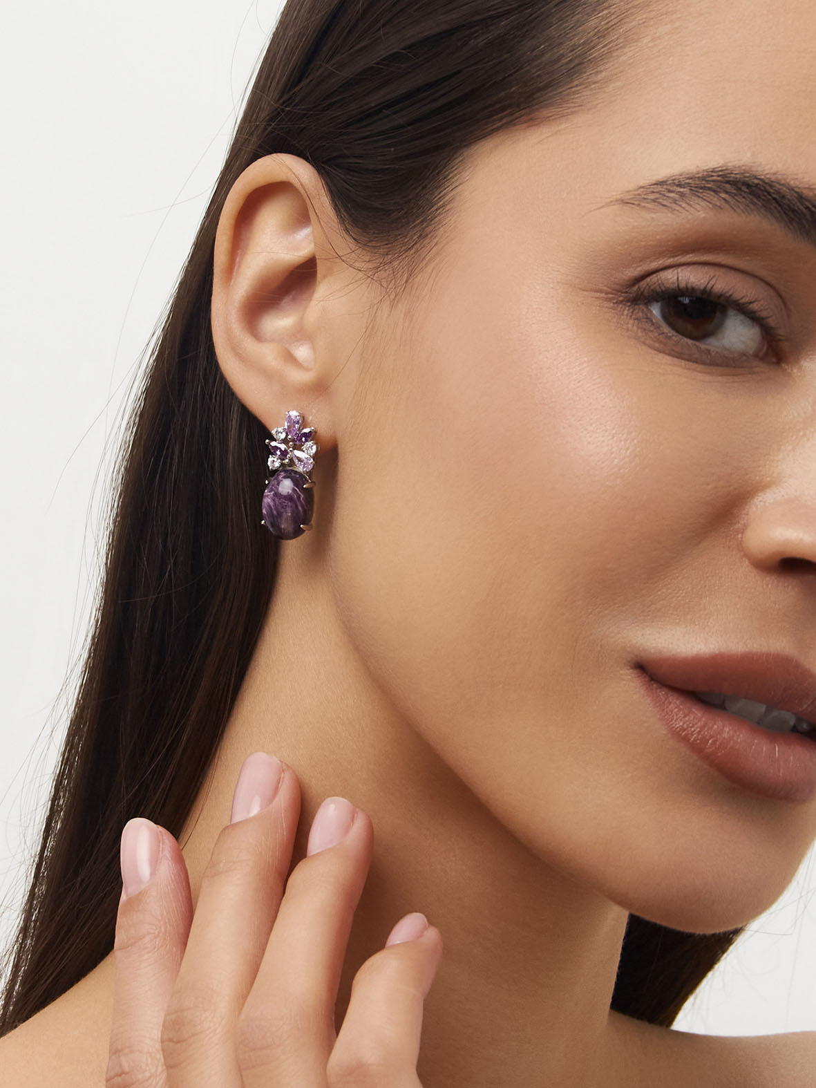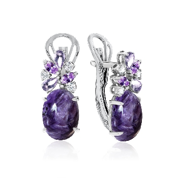 Серьги для женщин из серебра 925 пробы с чароитами,фианитами из коллекции Уральские самоцветы артикул 2340460886-92 от компании KRASNOE