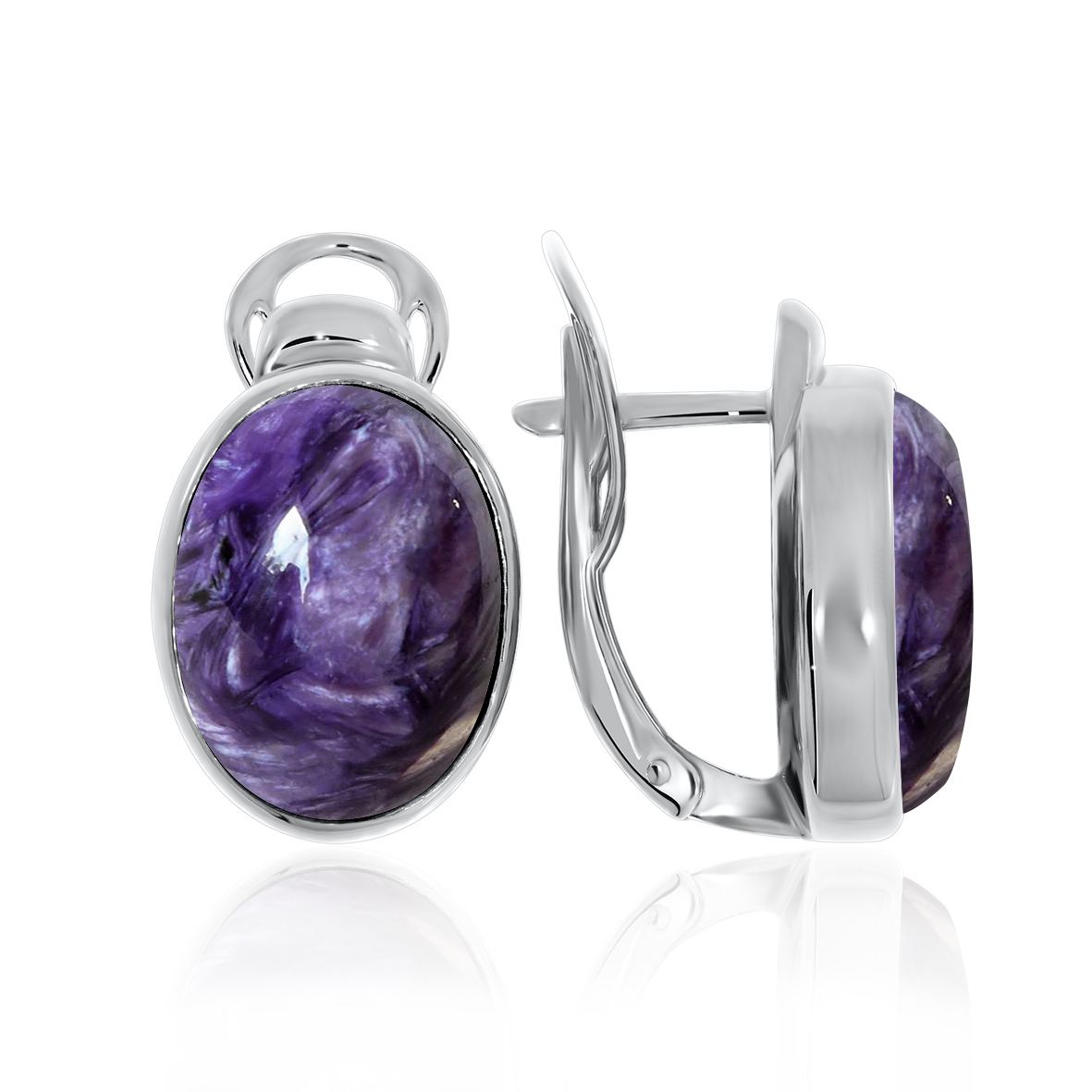 Серьги для женщин из серебра 925 пробы с чароитами из коллекции Уральские самоцветы артикул 2340460932 от компании KRASNOE