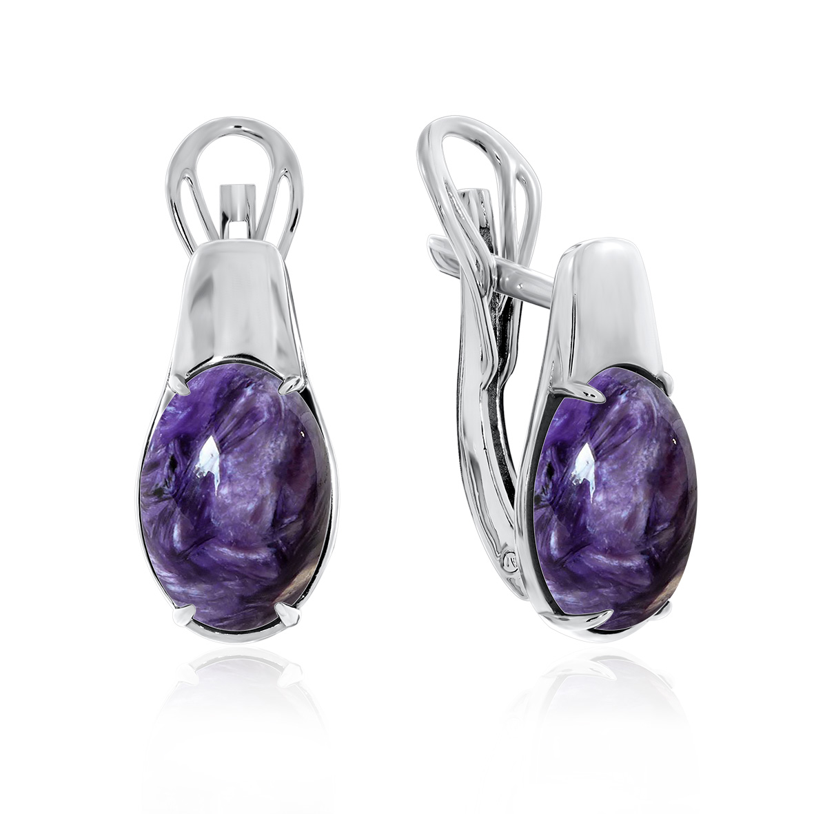 Серьги для женщин из серебра 925 пробы с чароитами из коллекции Уральские самоцветы артикул 2340460991 от компании KRASNOE