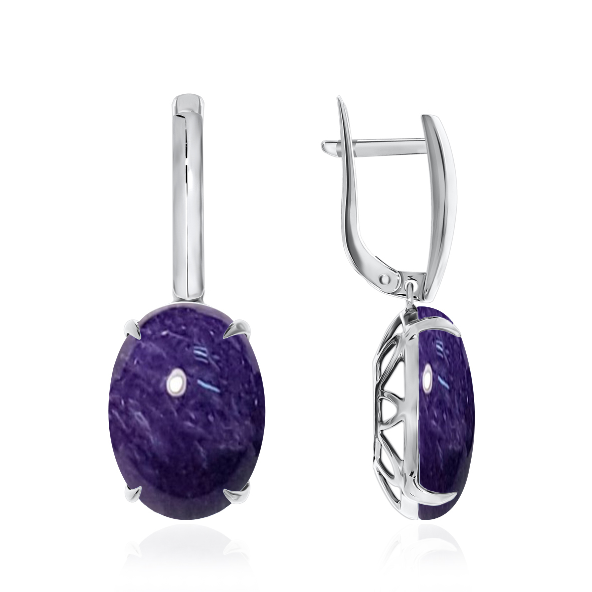 Серьги для женщин из серебра 925 пробы с чароитами из коллекции Уральские самоцветы артикул 2340461113 от компании KRASNOE