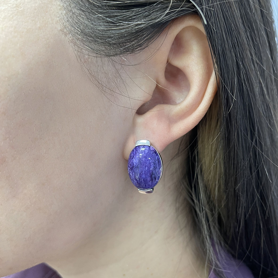 Серьги для женщин из серебра 925 пробы с чароитами из коллекции Уральские самоцветы артикул 2340463416 от компании KRASNOE