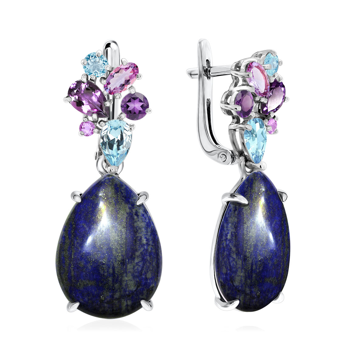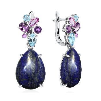 Серьги для женщин из серебра 925 пробы с топазами,лазуритами,,фианитами из коллекции Уральские самоцветы артикул 2340470875-92 от компании KRASNOE