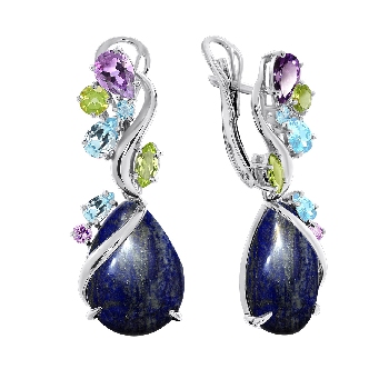 Серьги для женщин из серебра 925 пробы с лазуритамисо шпинелью,,топазами,,фианитами из коллекции Уральские самоцветы артикул 2340470876-8 от компании KRASNOE