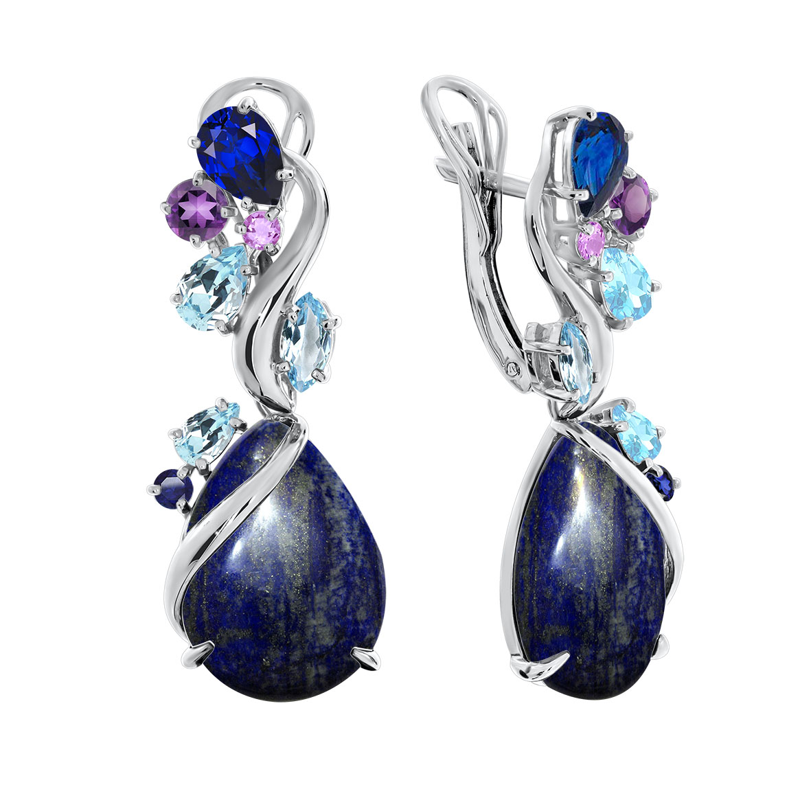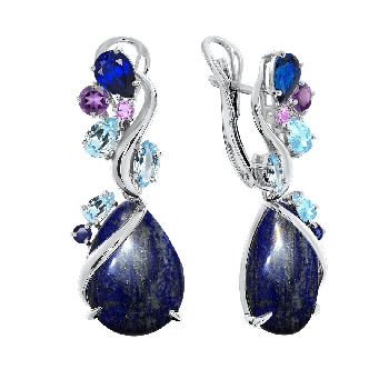 Серьги для женщин из серебра 925 пробы с лазуритами,фианитами,,ситаллами из коллекции Уральские самоцветы артикул 2340470876-80 от компании KRASNOE