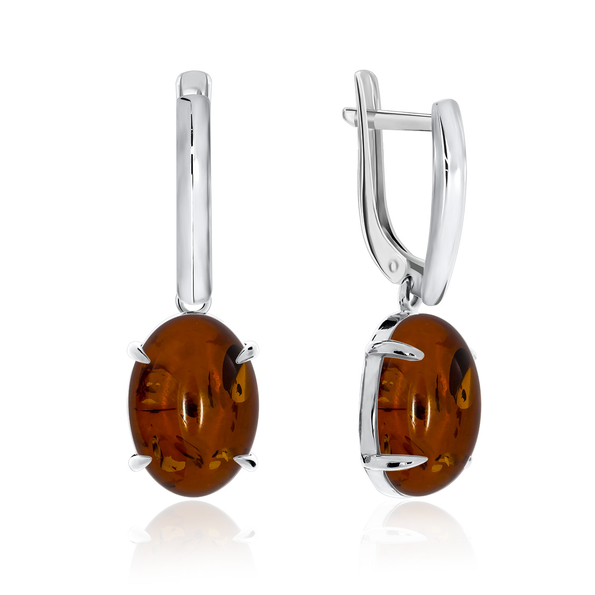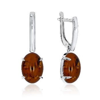 Серьги для женщин из серебра 925 пробы с янтарём из коллекции Уральские самоцветы артикул 2340482314 от компании KRASNOE