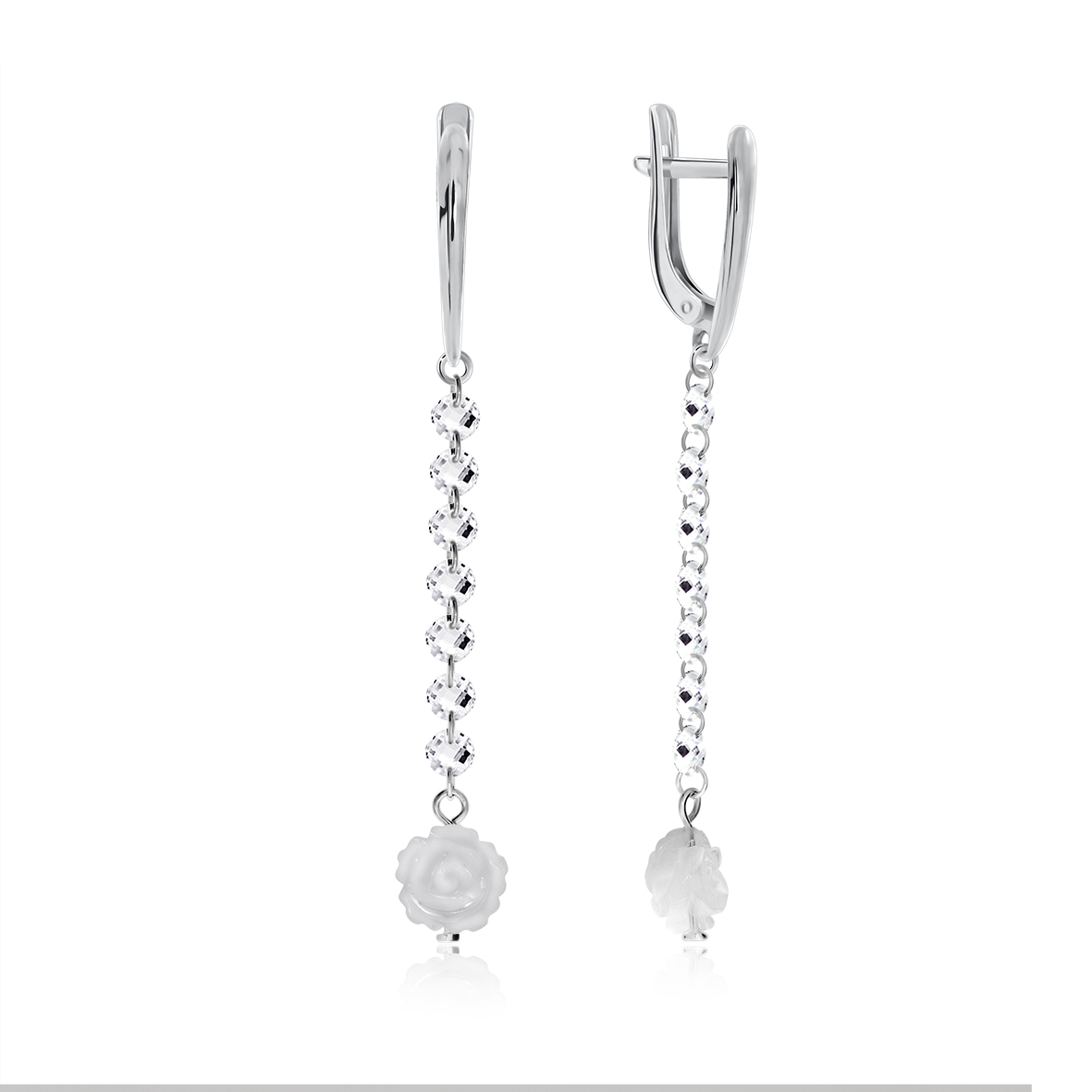 Серьги для женщин из серебра 925 пробы с перламутрами,фианитами из коллекции Невесомость артикул 2340490640 от компании KRASNOE