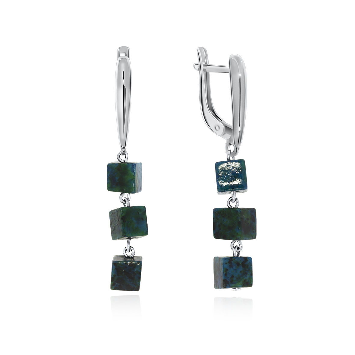 Серьги для женщин из серебра 925 пробы с хризоколлаами из коллекции Грани артикул 2340551705 от компании KRASNOE