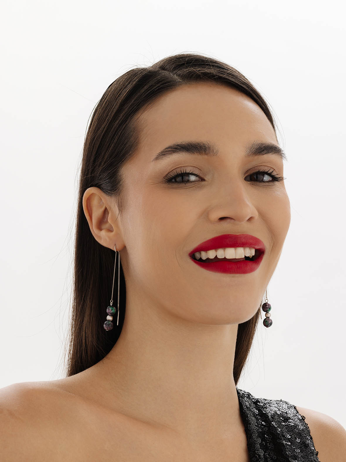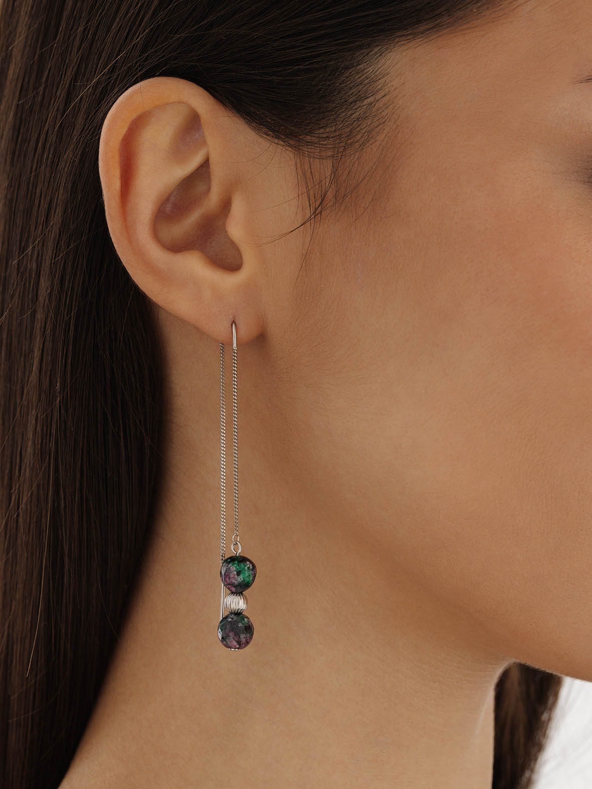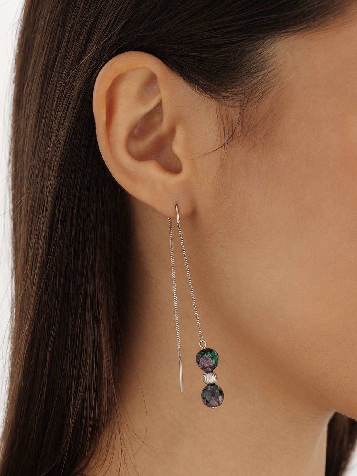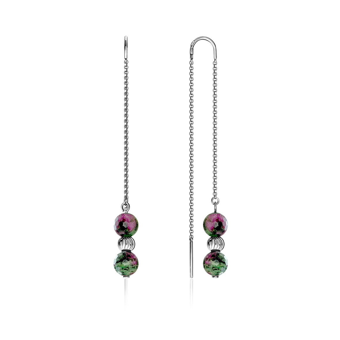 Серьги для женщин из серебра 925 пробы с рубин-цоизитами артикул 2340590720-1 от компании KRASNOE