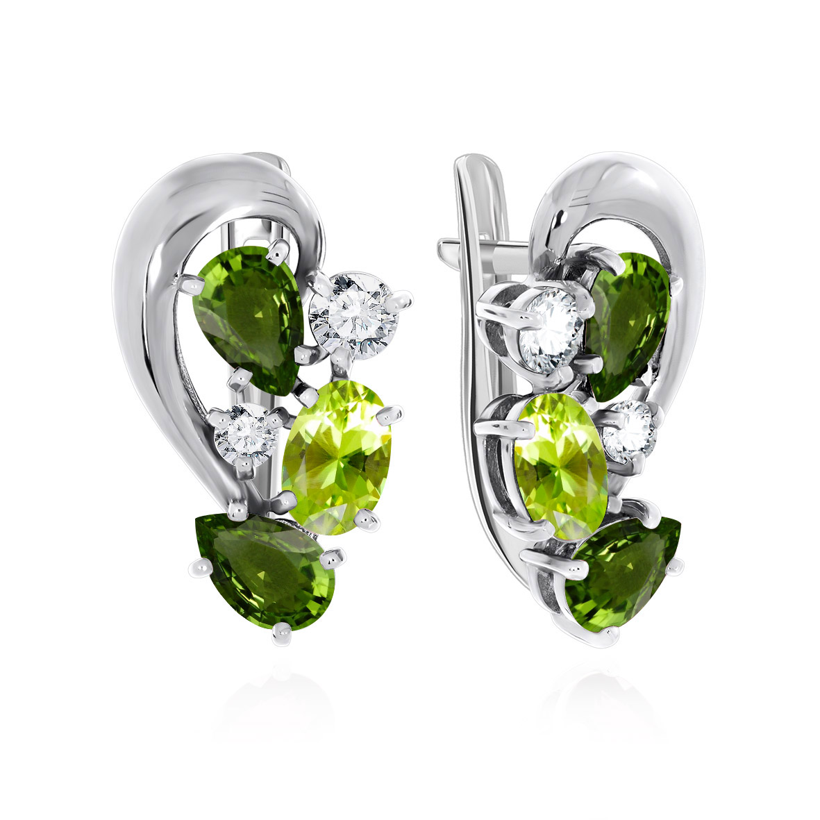 Серьги для женщин из серебра 925 пробы с фианитами,хризолитами из коллекции Разноцветие артикул 2340810883 от компании KRASNOE