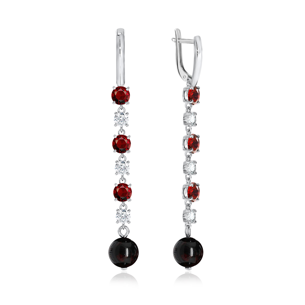Серьги для женщин из серебра 925 пробы с фианитами,гранатами из коллекции Perfecto артикул 2340821511 от компании KRASNOE