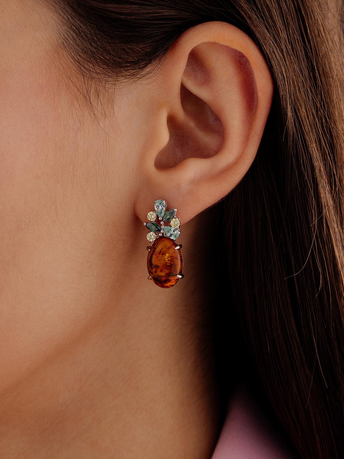 Для любителей натуральных камней и цветов мы создали коллекцию ювелирных украшений "Уральские самоцветы". Сочетания минералов, цепляющие дизайны и сила природы лежат в каждой частичке изделий. Завораживающая красота солннечного янтаря и россыпь мелких камней создают яркий ювелирный тандем. Такое украшение будет идеально сочетаться с натуральными тканями и естественным макияжем. Насладитесь частичкой природы! KRASNOE - нежные и трендовые украшения из серебра 925 собственной разработки, дизайна и производства для красоты твоих будней! В коллекцию ювелирного бренда KRASNOE входят пусеты, колье-чокеры и галстуки, джекеты, серьги-трансформеры, а также яркие детская коллекция.Размер всиавки: Наноизумруд маркиз 2,5*5, нанохризолит круг 2,5, фианит груша 3*5, янтарь овал кабошон 10*14.Длинна серьги 2.5см Ширина серьги 1см.