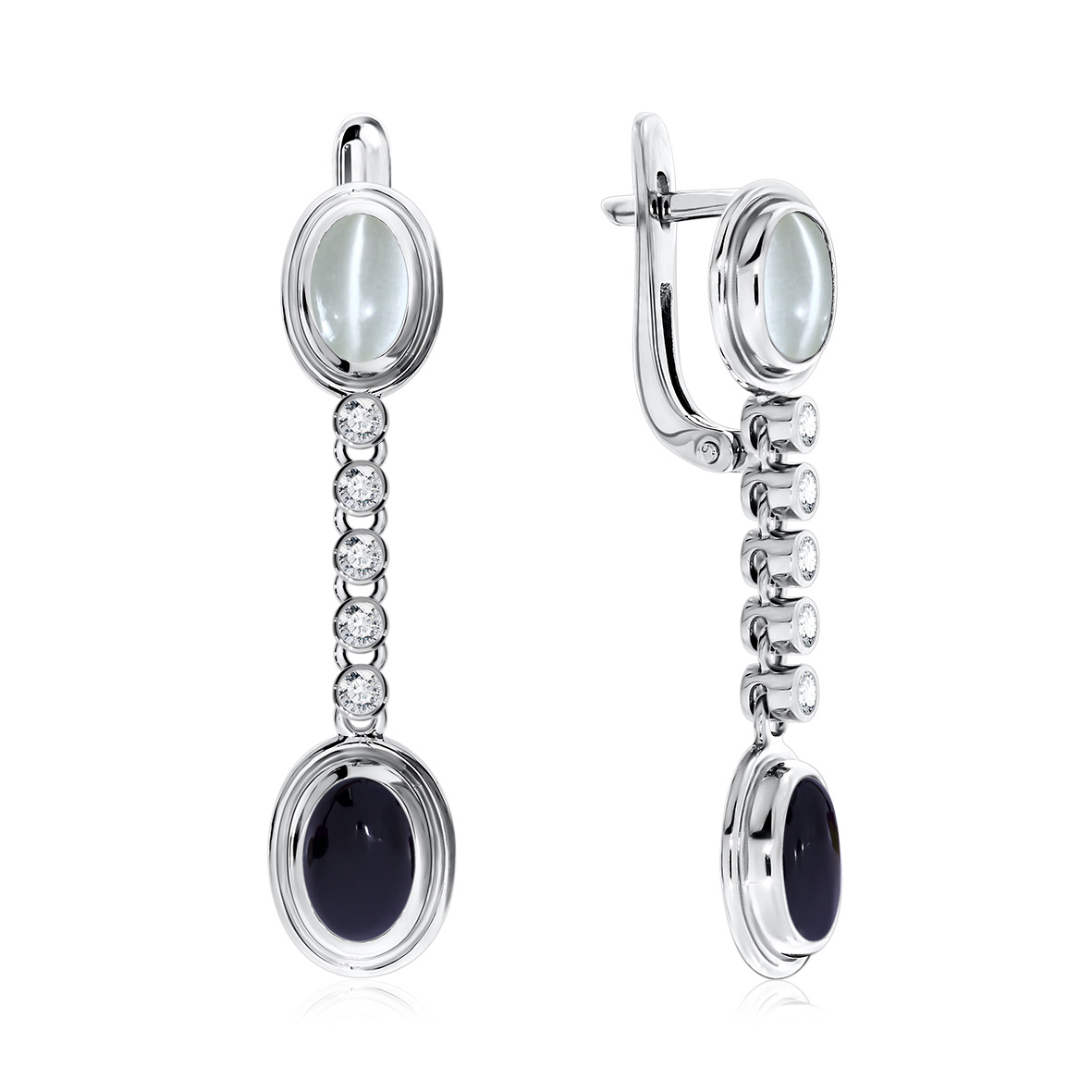 Серьги для женщин из серебра 925 пробы с агатами,кошачий глазами из коллекции Уральские самоцветы артикул 2340870377л-АК1 от компании KRASNOE