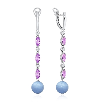 Серьги для женщин из серебра 925 пробы с агатами,фианитами,,аметистами из коллекции Shine артикул 2340871204л-2-85 от компании KRASNOE
