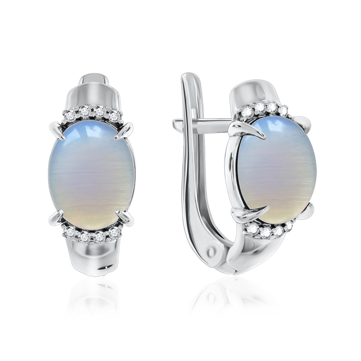 Серьги для женщин из серебра 925 пробы с лунным камнем,фианитами из коллекции Созвездие артикул 2340930371л-80 от компании KRASNOE