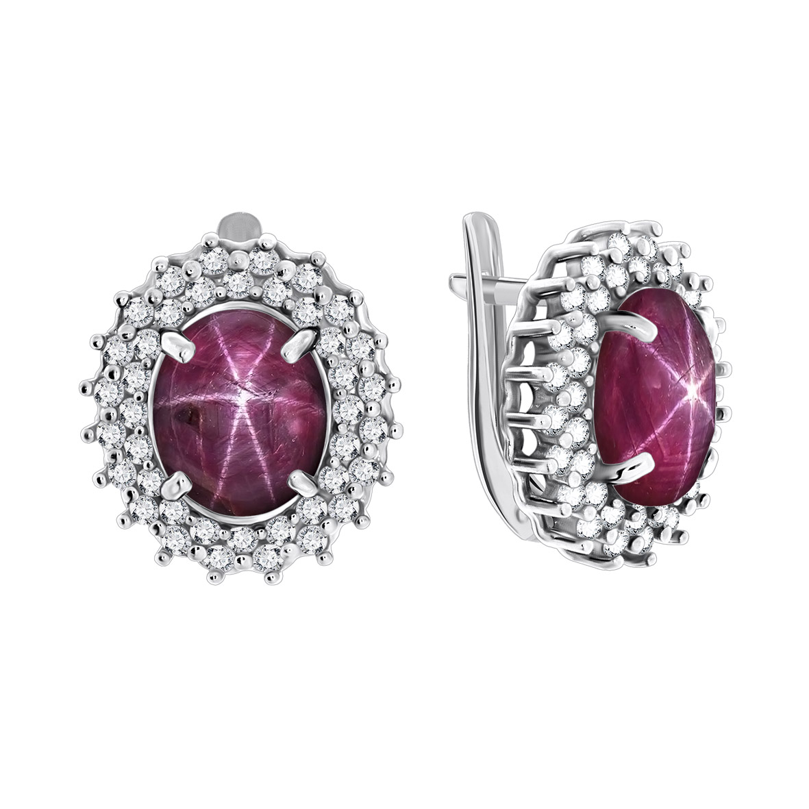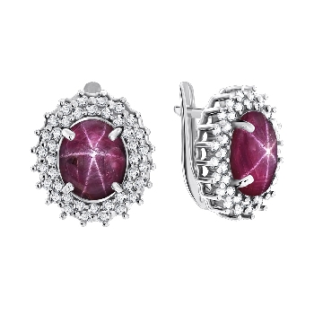 Серьги для женщин из серебра 925 пробы с рубинами звездчатыми,фианитами из коллекции Royals артикул 2340940150-3 от компании KRASNOE