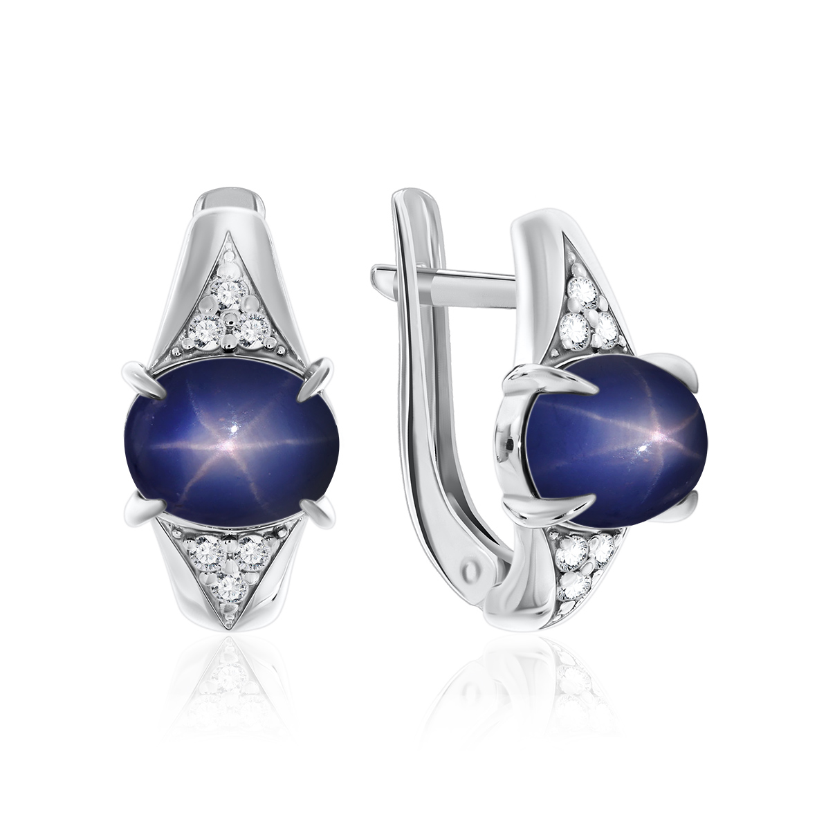 Серьги для женщин из серебра 925 пробы с сапфир звездчатыйами,фианитами из коллекции Созвездие артикул 2340940372л-8 от компании KRASNOE