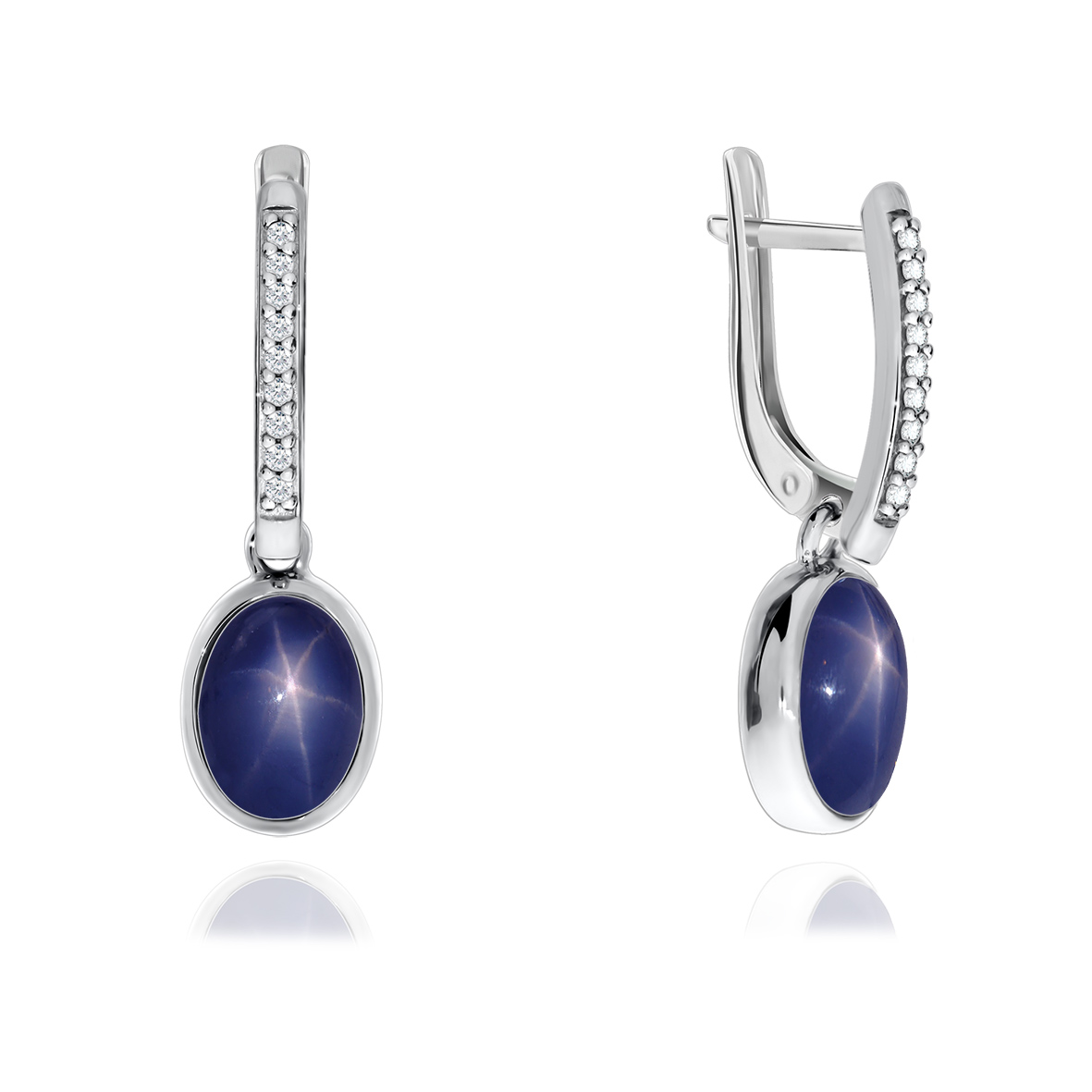 Серьги для женщин из серебра 925 пробы с сапфир звездчатыйами,фианитами из коллекции Созвездие артикул 2340940375л-8 от компании KRASNOE