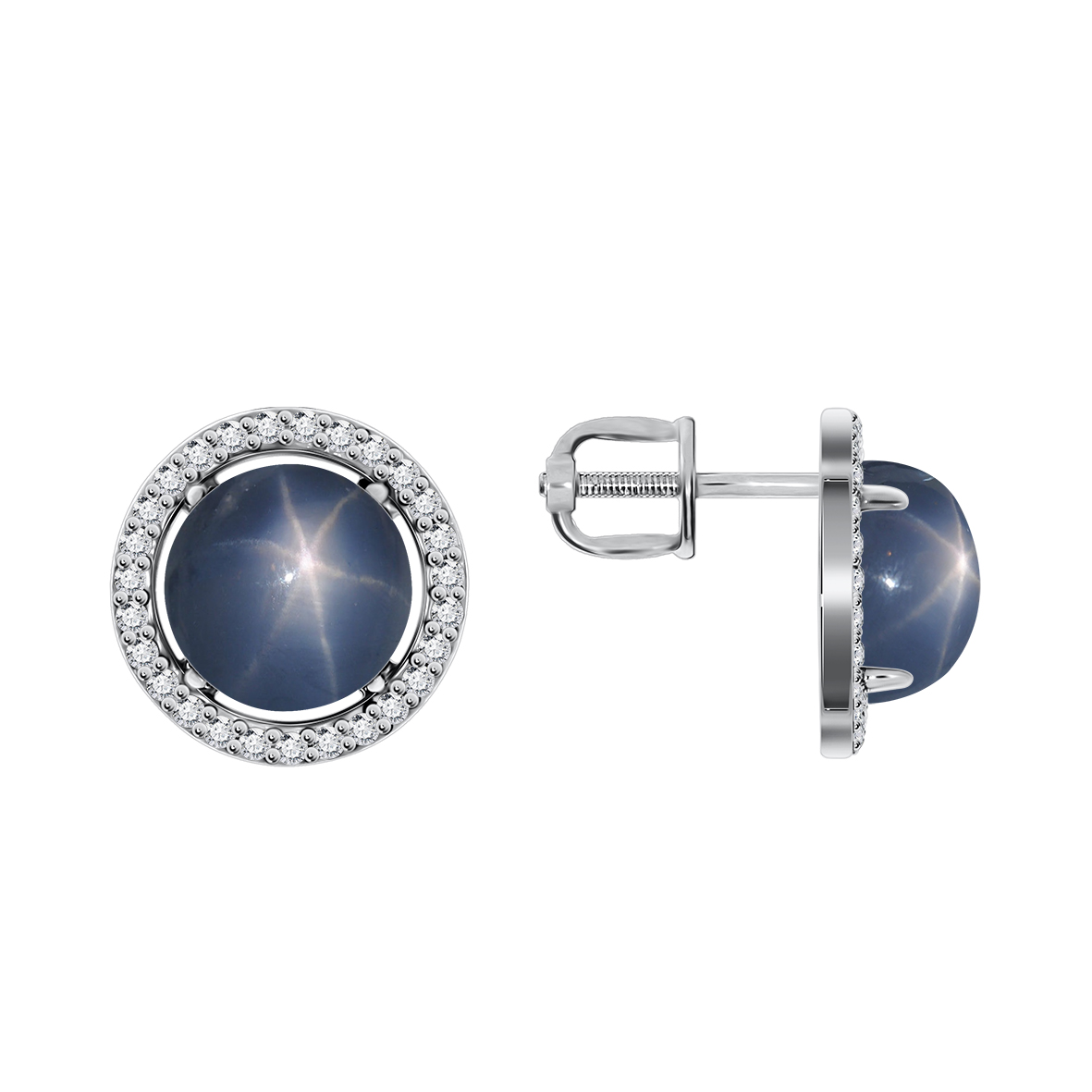 Пусеты для женщин из серебра 925 пробы с сапфир звездчатыйами,фианитами из коллекции Уральские самоцветы артикул 2340942055-8 от компании KRASNOE
