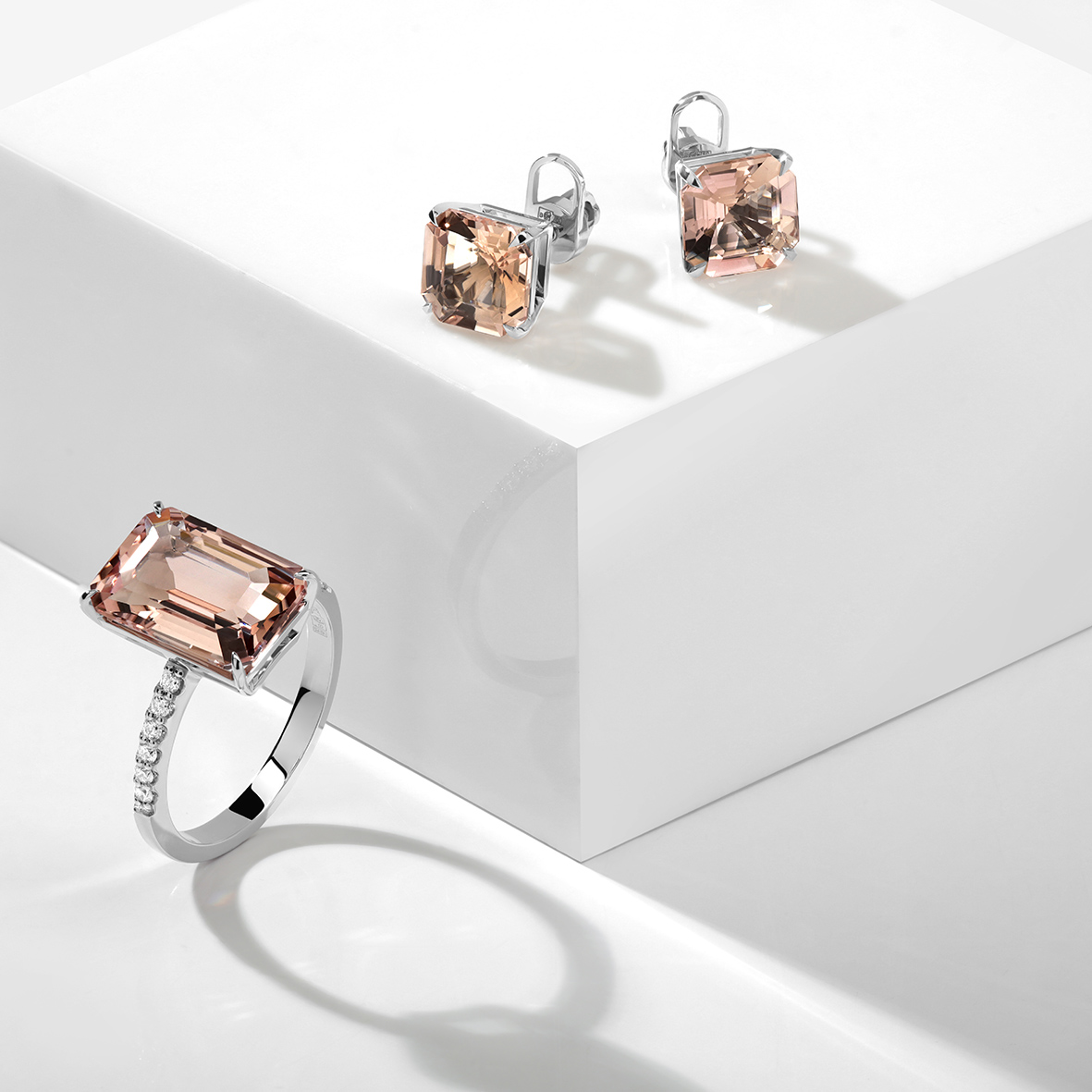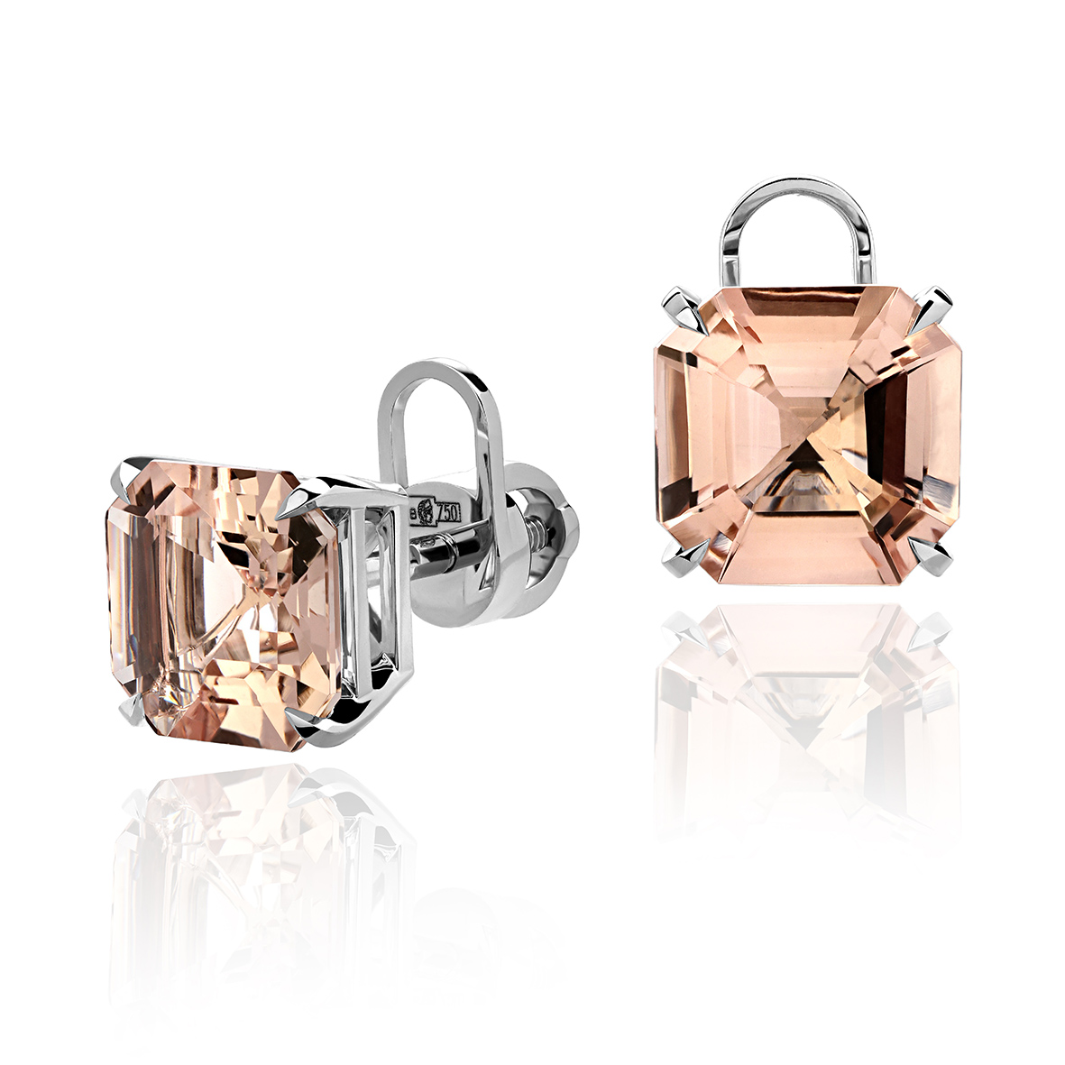 Контрастное сочетание тёплого Морганита и холодного белого золота делает эти классические пусеты по-настоящему оригинальными.