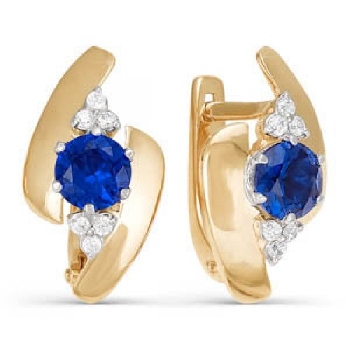 Серьги для женщин из золота 585 пробы с сапфиром артикул БР220185 от компании Дельта