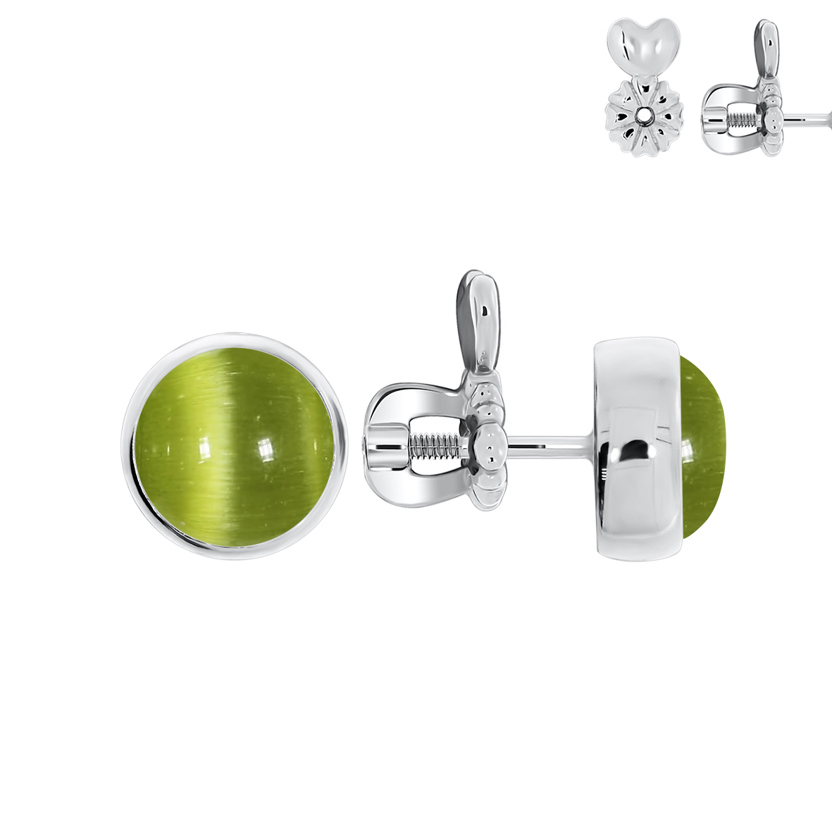 Пусеты для женщин из серебра 925 пробы с кошачий глазами из коллекции Уральские самоцветы артикул П340262780-57 от компании KRASNOE