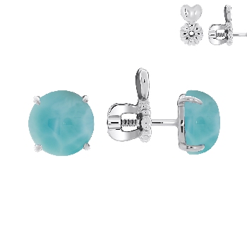 Пусеты для женщин из серебра 925 пробы с ларимарами из коллекции Уральские самоцветы артикул П340Л12680 от компании KRASNOE