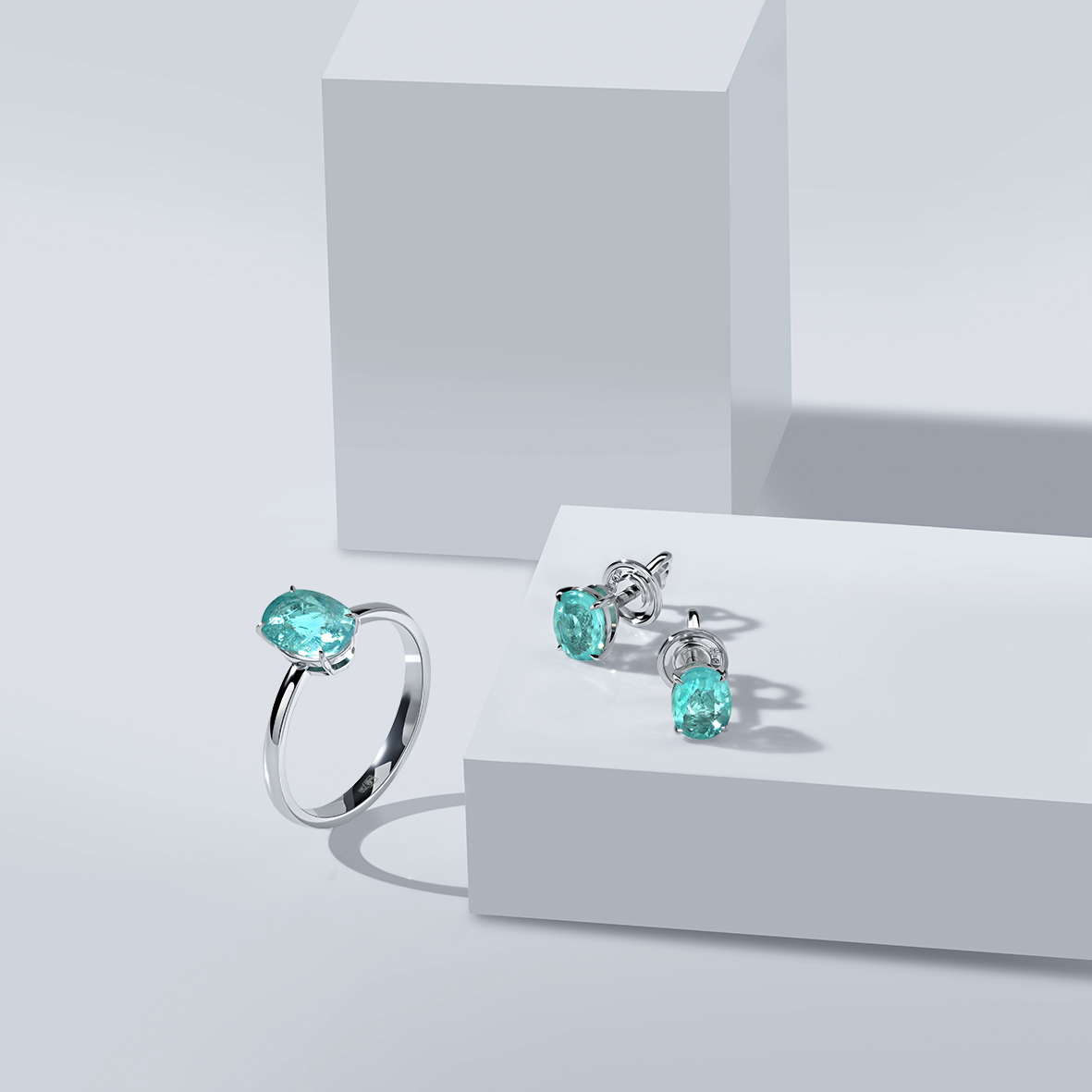 Серьги для женщин из золота 750 пробы с турмалином Параиба и бриллиантами от компании KRASNOE