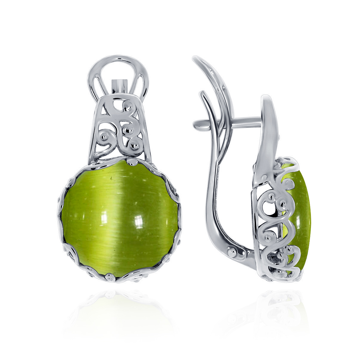Серьги для женщин из серебра 925 пробы с кошачий глазами из коллекции Уральские самоцветы артикул 2340260934-57 от компании KRASNOE